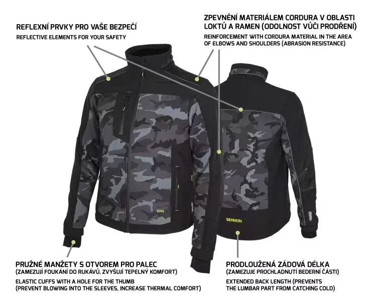 Bunda BNN softshell CAMOS black/grey